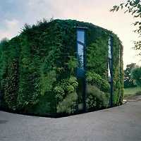 presented as a lush curved facade, the dwelling features a semi-circular form that follows the path of the sun, benefiting the vegetative exterior skin.