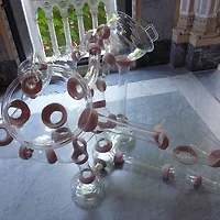 hand-carved from 600 pounds of italian marble, this sculpture reproduces an opera stage complete with its curtains, stage, floorboards and stairs, yet is also fully functional, designed to be installed in any house.