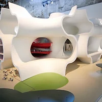 despite building a large scale pavilion, a key aim during the designing process was to minimize the carbon footprint, enforcing a cradle to cradle mentality into practice.