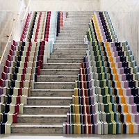 the installation aims to create a visual dialogue with the viewer, at times mimicking and reflecting the actions of those in front with a ghostly by vibrantly-coloured silhouette.