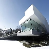 consisting of two separate exhibition spaces, the museum's design features a fluid body form which explores the relationship between the building and its environment.