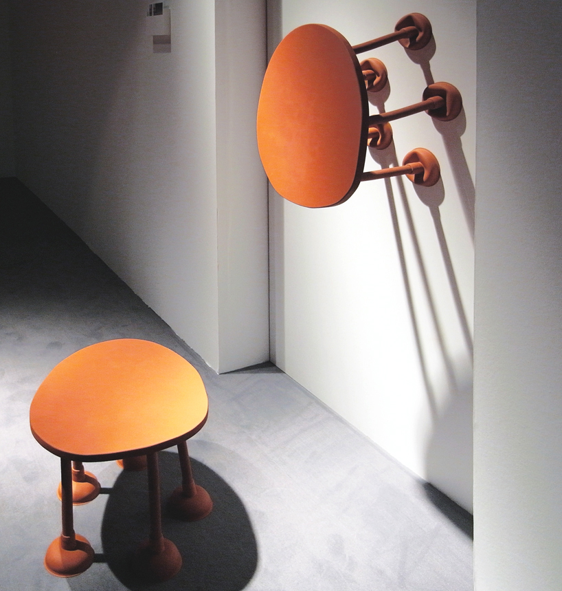 the side table adopts the idiosyncratic aesthetics of a plunger, transferring its form and materiality to a new environment.