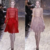 디자이너는 속이 비치는 시폰과 레이스 소재를 사용한 관능적인 의상들을 선보였다.