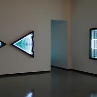 CCTV chandelier by hwang kim, a virtual doppelganger simulator for looking objectively at yourself in a third person point of view.