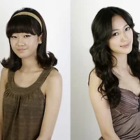 화이트 셔츠. 기하학 패턴의 플레어스커트. 모두 마크 by 마크 제이콥스. 옐로 도트 톱. 베네통. 구슬 네크리스. 미소니. 스트랩 샌들. 굽 11cm. H&M.