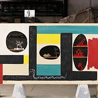 a reflective pendulum swings time onward as a distorted wooden cabin is continuously consumed by the power of fire in the installation 'ablaze - sentimento (s)travolgente', by italian designer ingo maurer, on exhibition for milan design week 2011