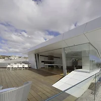 similar to a stacked pile of boxes, the dwelling's external form generates internal rooms which are set upon a series of platforms placed at varied elevations.