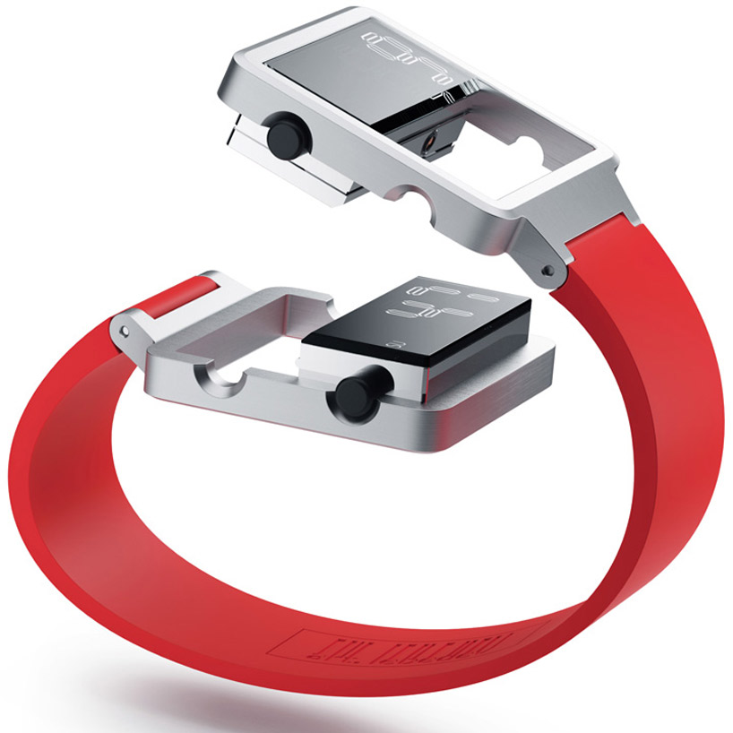 a digitized timepiece fastened on the wearer's wrist by a watch face with two connecting segments.