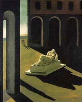 시인 아폴리네르가 ‘레 수와레 드 파리’ 지에서 극찬한 데 키리코의 ‘형이상학적인 풍경’에서 광장은 수수께끼 같은 묘한 분위기를 만들어주는 중요한 무대이다. 긴 아치형 회랑이 있는 건축물과 거대한 그림자가 침범하듯 과장된 원근법으로 표현된 건조하고 황량한 광장에는 종종 등을 돌린 정치가의 조각상이나 그리스 신화에 나오는 잠이든 아리아드네의 조각상이 등장한다. 공허한 공간에 얼굴을 알아볼 수 없는 어두운 실루엣의 작은 인물이 나타나기도 하고, 초현실적인 연극 무대에 불쑥 들어온 듯한 거대한 마네킹의 형상으로 변하기도 한다. 눈코입이 없는 둥그런 재봉용 마네킹의 얼굴이 고대 조각상의 몸에 붙어 있는 모습은 시각적으로 보이는 것 이상의 뭔가를 전달하려는 것 같은 묘한 매력을 띤다.