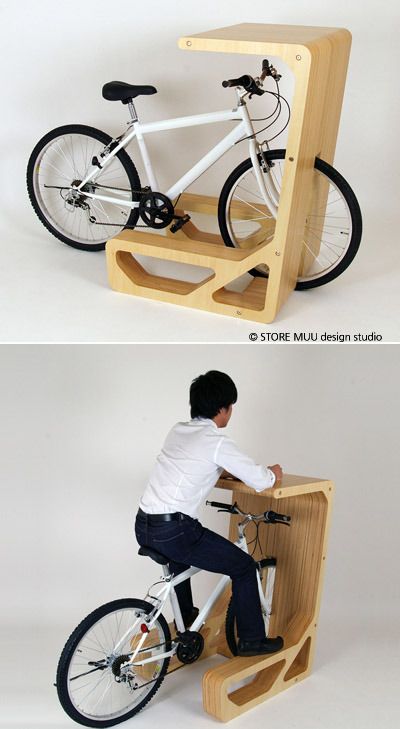 한 가지 주목할 점은 주차된 자전거가 바로 테이블 의자로 사용된다는 것. 자전거 안장에 앉아 지지대 양쪽 받침에 두 발을 올려놓으며 안정적인 자세로 테이블을 사용할 수 있다고. 자전거 실내주차를 통해 도난 방지는 물론 공간절약과 자원 재활용의 일석삼조 효과를 얻을 수 있는 아이디어 제품이다.