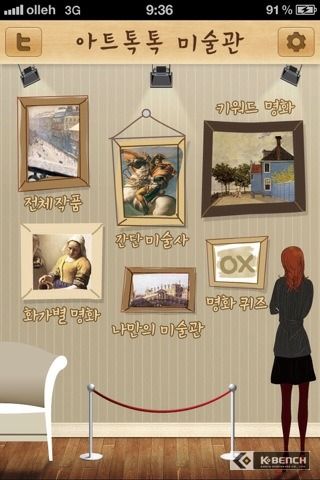 명화에 대한 친근함을 테마로 한 “아트톡톡 미술관”은 ‘모네의 국화, 뒤러의 자화상’ 등 200여장의 아름다운 명화와 미술사, 화가에 대해 쉽고 재미있는 설명으로 감상할 수 있는 아이폰용 앱이다.