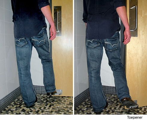 이러한 불쾌감을 근원적으로 차단하는 공중화장실 손잡이 디자인이 화제가 되고 있다. 이 손잡이는, 정확히 말하면 손잡이가 아닌 '발잡이'다. 손이 아닌 발로 화장실의 문을 열 수 있기 때문이다. 획기적인 디자인의 이 화장실 손잡이는 기존 화장실에도 큰 어려움 없이 설치할 수 있다고 제조 회사 측은 설명했다. '단순하지만, 획기적인 아이디어'라는 평가를 받는 발로 여는 화장실 손잡이의 판매 가격은 49.99달러다.