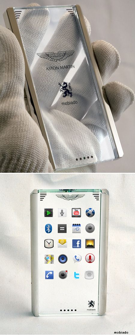 캐나다의 럭셔리폰 제조업체 모비아도와 영국의 고급승용차 브랜드 애스턴 마틴이 유리 컨셉의 스마트폰 디자인을 선보여 관심을 모았다. 일명 ‘CPT002’라 불리는 이 컨셉폰은 스크래치 방지기능이 뛰어난 고급 사파이어 크리스탈을 터치스크린 소재로 활용해 유리처럼 투명하면서도 깔끔한 분위기를 연출한 것이 특징. 스마트폰으로서의 독자적 기능 뿐 아니라 애스턴 마틴 브랜드의 고급 자동차들과 연동 사용이 가능하도록 디자인되어 더욱 큰 관심을 모았다.
