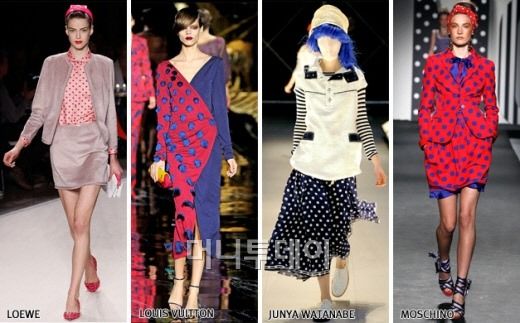 여름에 가장 잘 어울리는 패턴 중의 하나가 바로 ‘도트’무늬이다. 파스텔 컬러에 점을 찍듯 포인트를 주는 페미닌하고 귀여워 보이는 아이템부터 뀌띄르에서 볼 수 있는 강렬한 보색 대비의 도트 무늬로 상,하의 원피스를 선보이거나 혹은 70년대 빈티지한 스타일을 엿볼 수 있는 쉬폰 소재의 미디 길이 스커트로 이지한 룩을 선보이기도 한다.