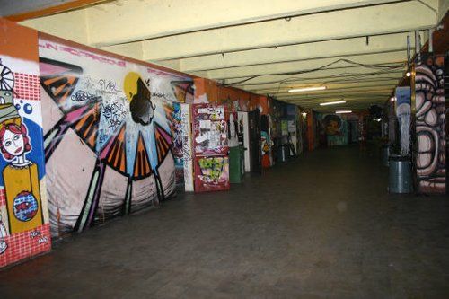 레온카발로 소셜 공간. 그라피티로 구석구석이 도배되어 있다.