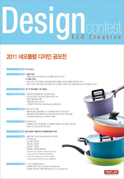 네오플램 마케팅팀 김소영 팀장은 "유명 디자이너와의 콜라보레이션위주로 진행되는 국내 쿡웨어 업계의 관행에서 벗어나, 젊은 감각을 가진 대학생을 대상으로 한 디자인 공모전을 통해 트렌디하며 신선한 결과를 기대하고 있다. Eco Creative라는 창의적인 콘셉트를 어떻게 제품 디자인으로 구현할 지 기대가 크다"고 말했다.
