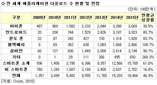 실제로 많은 시장 조사기관들은 2015년 경이면 안드로이드와 아이폰 진영의 앱스토어 규모도 역전될 것으로 내다보고 있다. 대표적인 것이 오범(Ovum)이다.