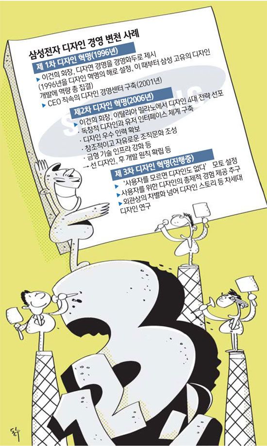 이건희 삼성 회장이 지난 1996년 신년사를 통해 강조한 말이다. 그 뒤 지난 2005년 이탈리아 밀라노에서 이 회장이 ‘4대 디자인 전략’을 선포, 제2의 디자인 혁명이 시작됐다. 이런 삼성전자가 올해를 기점으로 제3의 디자인 혁명에 나서고 있다. 1차와 2차 디자인 혁명을 거쳐 또 다른 변신에 나서고 있는 것이다.