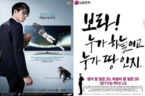 이는 LG전자는 최근 미국 주요 신문에도 3D TV 테스트에서 소비자 5명 중 4명이 LG를 선택했다며 소니와 삼성에게 2D TV나 만들라는 자극적인 비교 광고를 시작한 것과 같은 맥락이다.