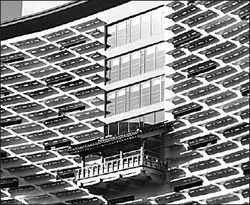 건축주인 박경실 파고다아카데미 회장은 "커튼월의 미적 감각을 살리면서 친환경 효과를 얻기위해 전통 창살 문양의 루버를 도입했다"고 설명했다.