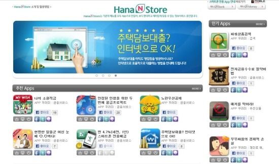 한편 하나은행의 경우 ‘하나앤스토어’라는 기존의 메뉴를 모두 애플리케이션으로 만들어 정보를 제공하는 별도의 페이지를 운영하고 있다.