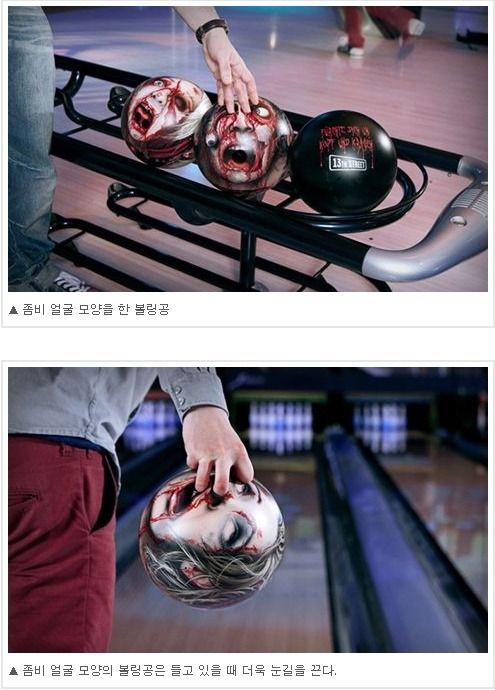 아마 이게 볼링장에 있다면 여러 사람이 기겁하지 않을까 싶다. 바로 좀비 얼굴로 디자인된 엽기적인 볼링공이 그것이다.