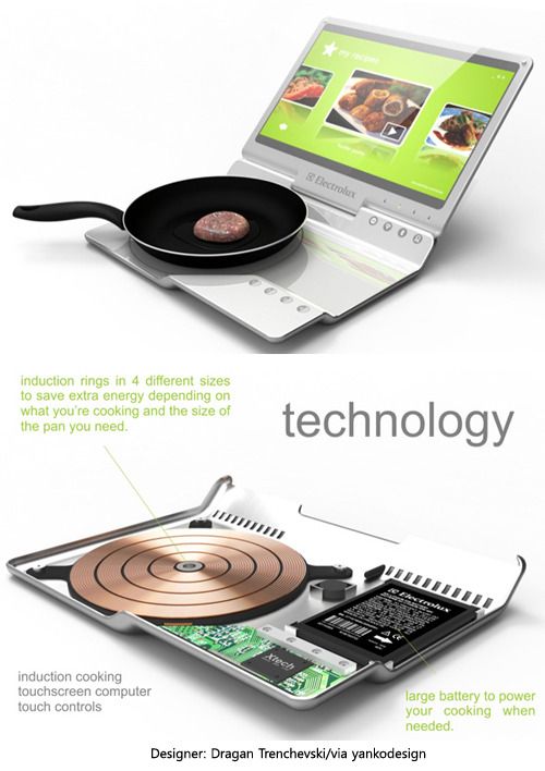 일명 모바일 키친이라 불리는 이 조리기구는 마케도니아 출신 산업 디자인학도 드라간 트렌체프스키가 고안한 것으로 그 생김새부터 기능까지 노트북의 그것을 그대로 활용한 것이 특징. 노트북 화면과 동일한 형태의 스크린을 통해 조리 도중에도 음악 및 동영상을 감상할 수 있는 것은 물론 인터넷으로 다양한 레시피 정보를 검색할 수 있다. 키보드 자리를 대신한 전기버너는 가열범위를 4단계 크기로 조절 가능해 냄비 크기에 따라 에너지를 최대한 효율적으로 사용할 수 있으며 덮개를 덮으면 즉석 도마로 변신한다고. 도마 하단에는 USB 포트 형식의 깜찍한 미니 강판까지 부착되어 있다.