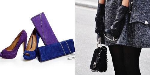 이번 시즌 잇 컬러인 블루와 퍼플색의 힐과 클러치는 고혹적인 매력을 발산한다. 고급스럽고 페미닌한 분위기를 낼 수 있는 퍼플 스웨이드를 힐에 적용하니 신비스러운 분위기를 낸다.