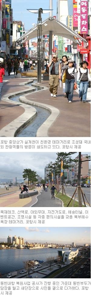 바닷물과 강물이 만나는 동빈내항 복원사업은 영일만의 새로운 상징으로 포항의 대표 관광상품을 목표로 하고 있다. 이 사업은 송도동∼해도동 형산강 1.3㎞구간의 주변 건물을 철거하고 매립지를 걷어낸 뒤 폭 18∼30m, 깊이 2m가량의 물길을 연결하는 것이다.