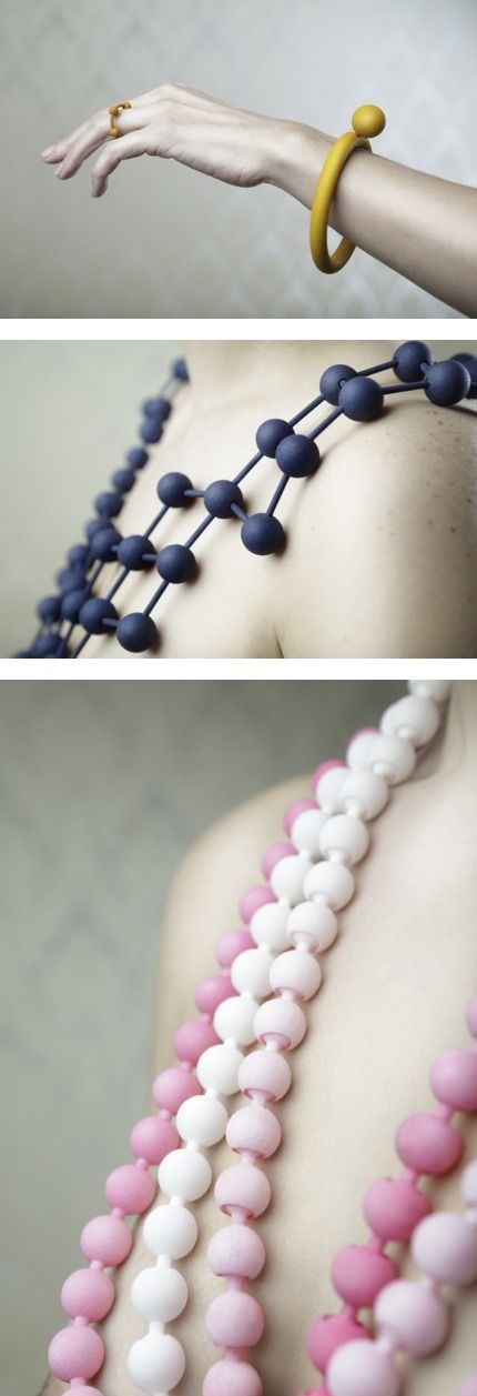 알리시아 멜카-테이흐루(Alissia Melka-Teichroew)의 ‘연결된 장신구(Jointed Jewelry)’ 컬렉션이 벤투라 베를린(Ventura Berlin)’에서 전시회를 갖는다. ‘연결된 이야기(Jointed Story)’라는 이름의 전시에서, 알리시아 멜카-테이흐루는 일종의 눈속임 장신구들을 선보인다. 구슬을 꿰어 만든 것 같아 보일 때조차, 실제로는 그렇지가 안다. 3D 프린터로 층층이 쌓아올려 만든, 전체가 하나로 연결된 디자인인 것. 알리시아 멜카 테이흐루는 전시에서 완성된 제품은 물론, ‘마디’라는 이름을 배반하는 역설적인 생산 과정 역시 함께 소개할 예정이다.