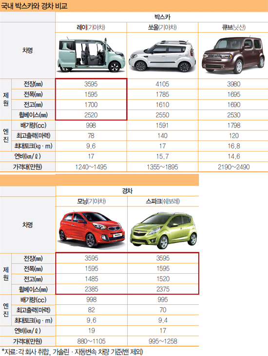 레이가 출시되면서 국내 박스카 경쟁은 한층 가열됐다. 현재 국내에 출시된 박스카는 쏘울, 큐브, 레이 3파전으로 압축된다.