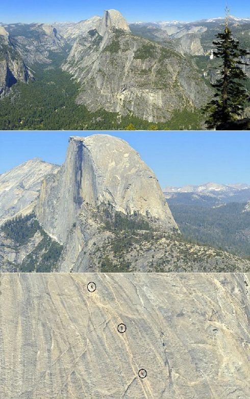 사진은 확대하기 전 멋진 장관의 바위산 전경이 담겨있다. 나무가 거의 보이지 않는 웅장한 느낌의 바위산과 맑은 하늘의 경치가 아름답지만 그저 평범한 사진과 다름없다.