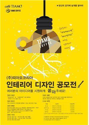 이번 공모전은 ‘띠아모커피’나 ‘카페띠아모’ 브랜드에 관심있는 사람이라면 누구나 참여할 수 있다. 카페 인테리어에 대한 감각적이고 참신한 내용으로 규칙이나 제한 없이 응모 가능하다.